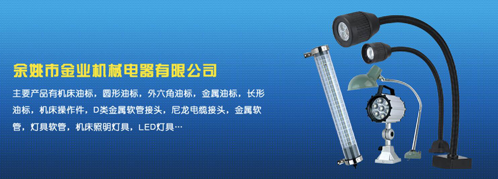 余姚市金業機械電器有限公司主要產品有機床油杯,圓形油標,外六角油標,金屬油標,長形油標,機床操作件,D類金屬軟管接頭,尼龍電纜接頭,金屬軟管,燈具軟管,機床照明燈具,LED燈具,DGT型線路軟管防護套,TL型鋼制電纜手軌,電纜尼龍拖鏈,可調塑鋼冷卻管等產品,規格齊全,全部自制。望國內外客戶前來考察:共同發展…
